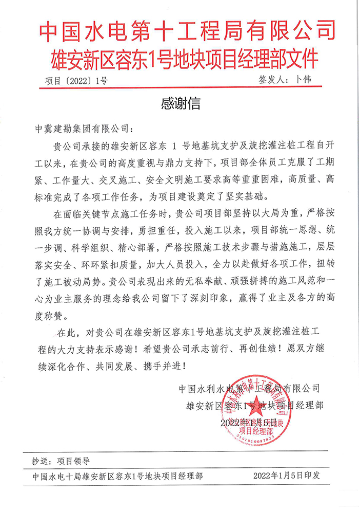 近期,公司連續收到業主及總包方發來的表揚信及榮譽稱號,對我公司所承擔的多個工程項目的生產組織、質量管控、安全文明施工等給予了充分肯定。