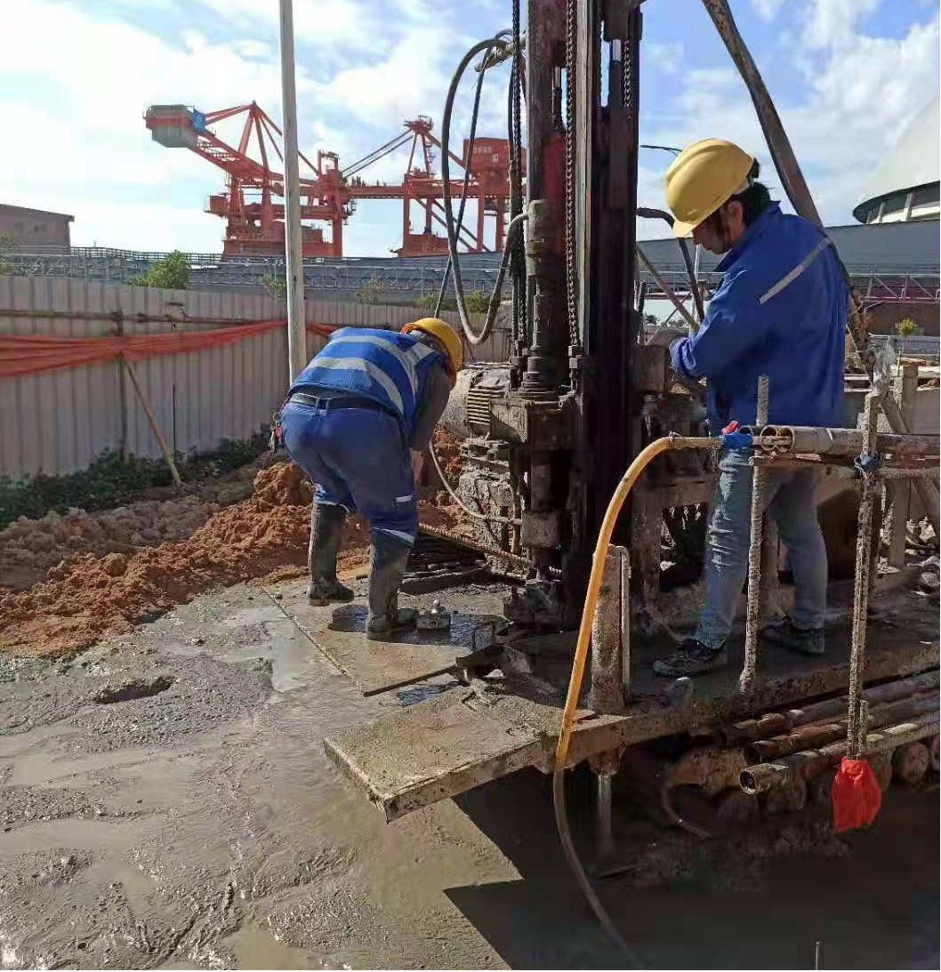 本工程建設地點位于廣東省汕尾市,受陸豐寶麗華新能源電力有限公司委托,我公司承擔本項目樁基施工。工程量包括Φ1000mm的灌注樁80根、Φ700mm的高壓旋噴樁樁80根。灌注樁為嵌巖樁,混凝土強度等級為C30,設計要求嵌入中風化巖層,且嵌巖深度不小于1D,且樁長不小于15m。高壓旋噴樁樁體有效直徑700mm,有效樁長不小于9m,同時滿足樁底標高達到強風化花崗巖面。