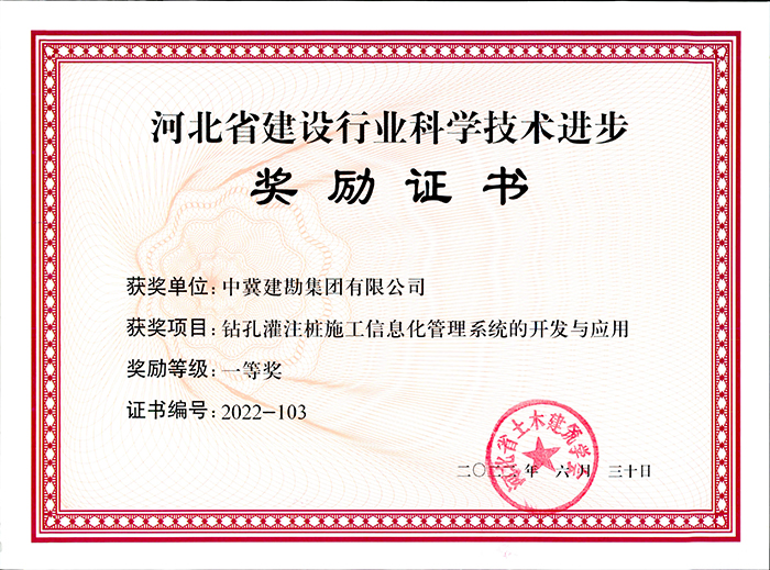 一等獎1項:鉆孔灌注樁施工信息化管理系統的開發與應用