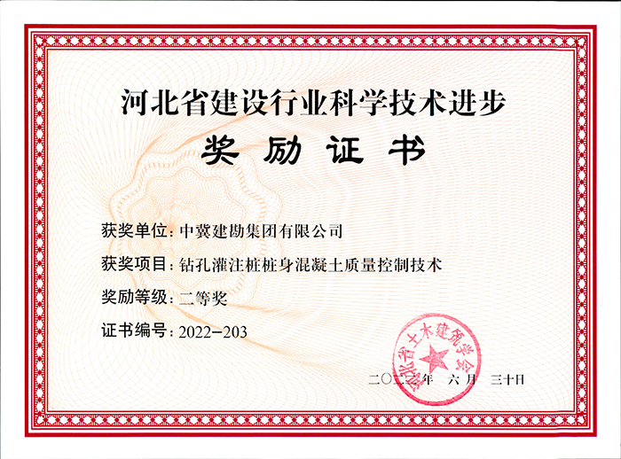 二等獎1項:鉆孔灌注樁樁身混凝土質量控制技術