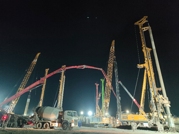 本項目位于福建省福清市,由萬華化學(xué)(福建)碼頭有限公司投資建設(shè),集團公司承建了1#乙烯低溫儲罐的全部樁基工程。項目采用高承臺樁基結(jié)合樁柱一體化施工工藝,使用旋挖鉆機成孔,高質(zhì)量完成了全部448根大直徑鋼筋混凝土灌注樁施工,樁徑均為1200毫米。